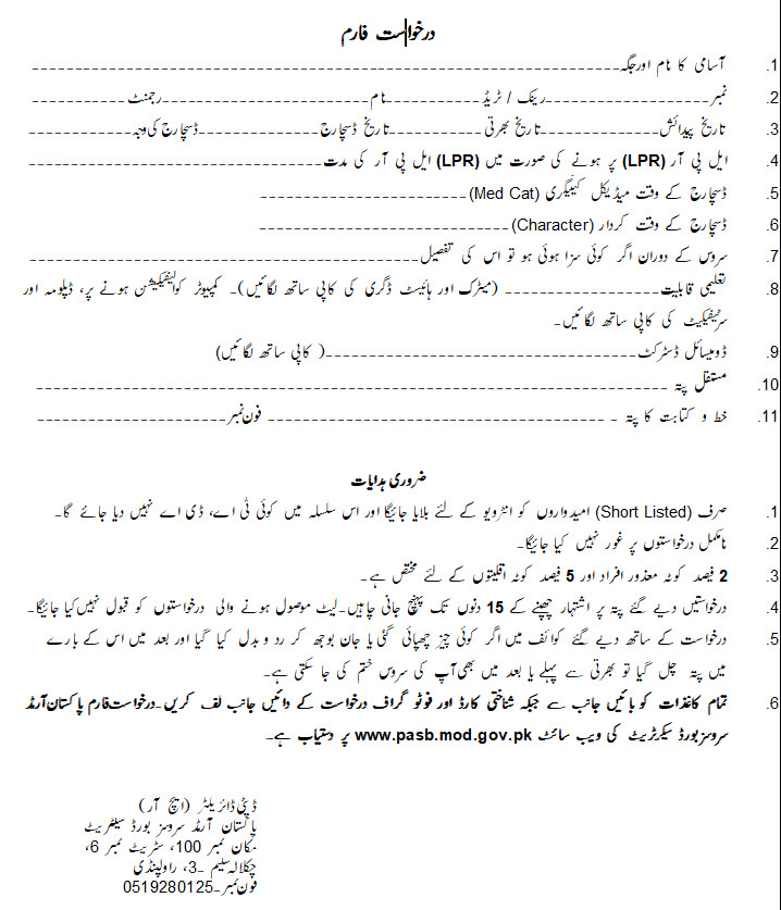 Application for Re-employment of JCOs/Sldrs (Equivalent from Navy / PAF)